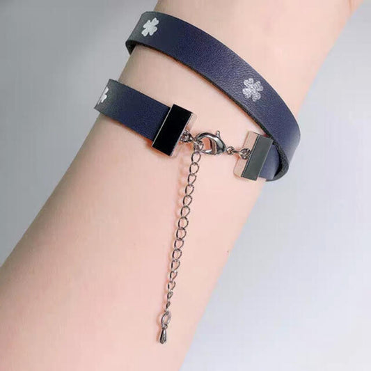 Dior Black Leather Bracelet - Clover Charm